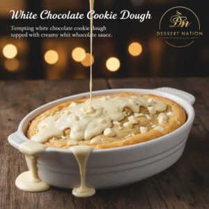 Tempting white chocolate cookie dough topped with creamy white chocolate sauce.
