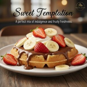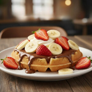 Crispy waffle topped with rich Nutella, fresh strawberries or sweet bananas or both - a perfect mix of indulgence and fruity freshness.